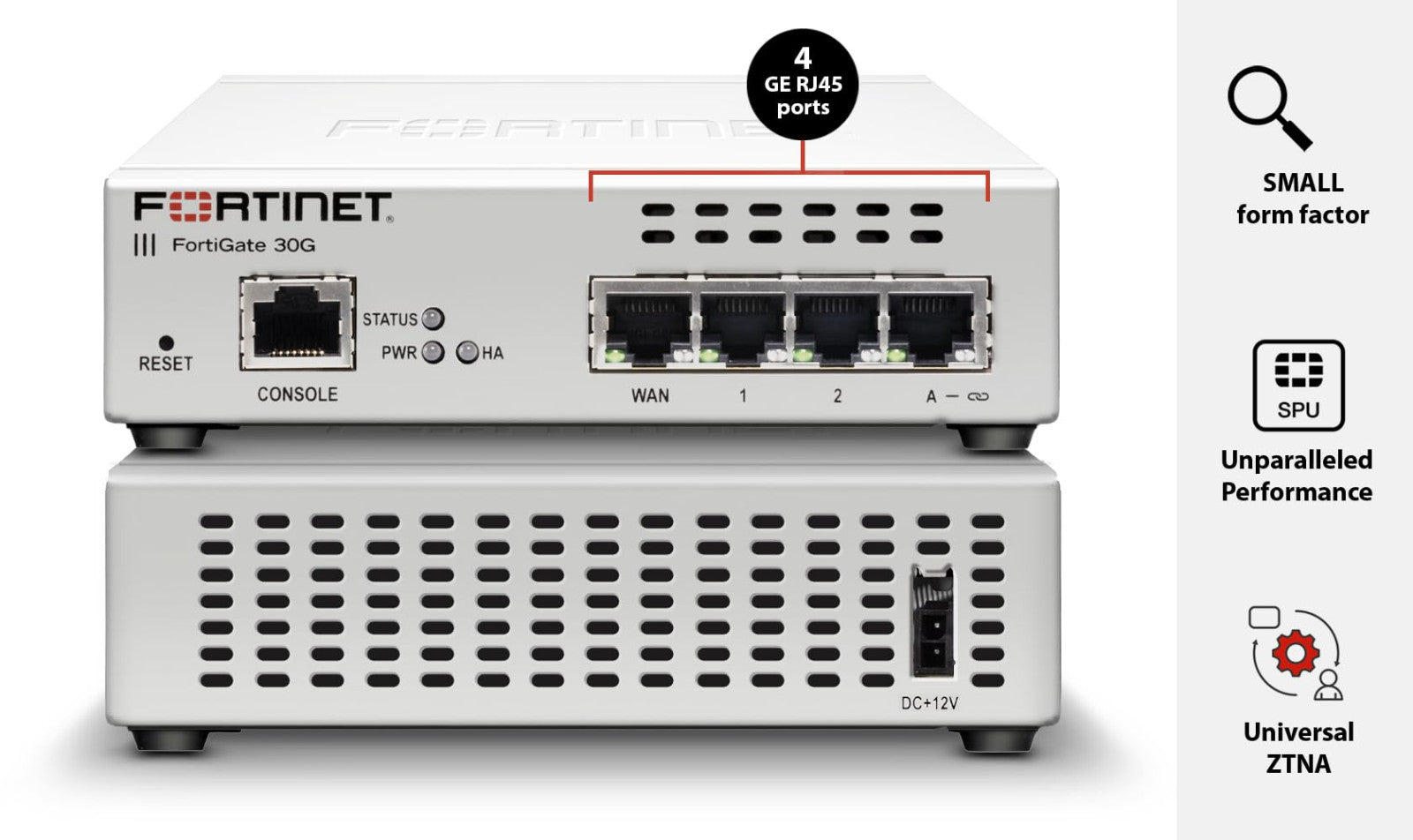 Fortinet FortiGate-30G Firewall con SD-WAN integrato e 4 porte GE RJ45