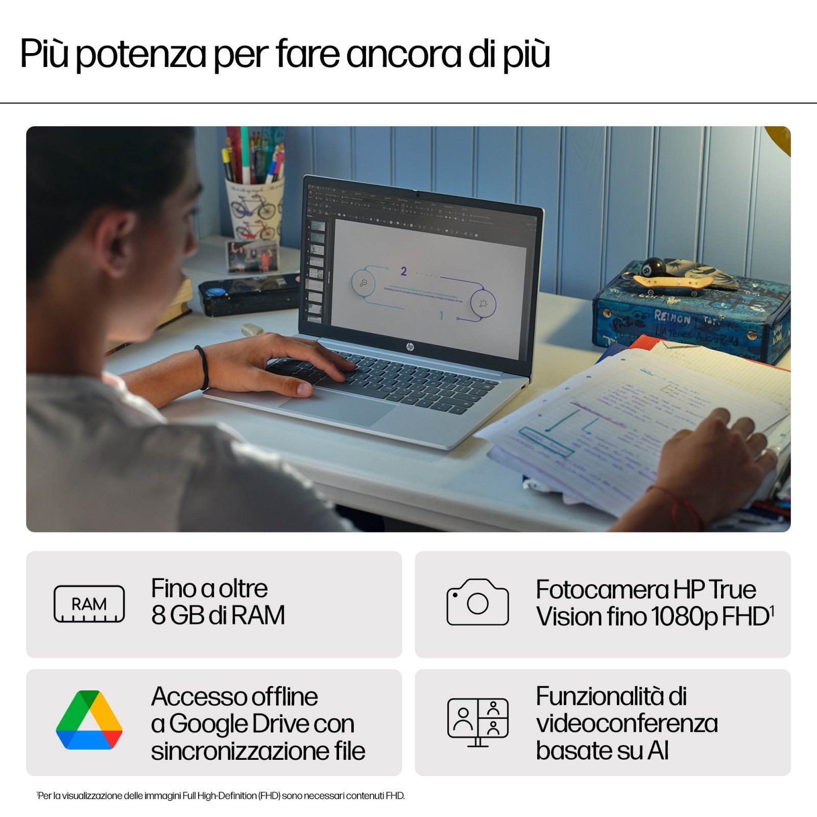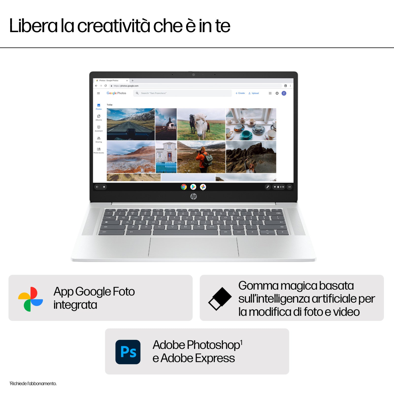 L'HP Chromebook 14a-nf0007nl è progettato per chi cerca un dispositivo affidabile, leggero e performante per affrontare la giornata con stile. Perfetto per studenti, professionisti e chiunque necessiti di un Chromebook versatile per lavorare, studiare o semplicemente navigare sul web.
