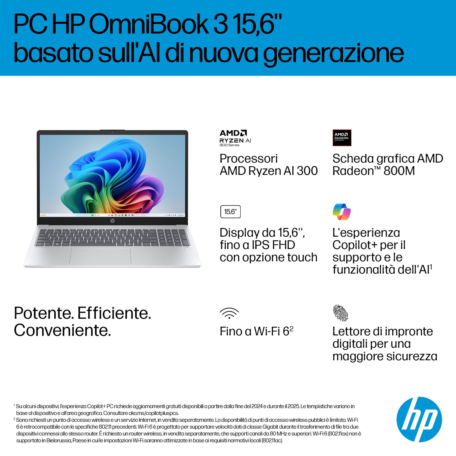 Hp OmniBook 3, il computer portatile con AMD Ryzen AI 7, offre prestazioni elevate e batteria a lunga durata. Ideale per lavoro e studio grazie al design leggero e portatile.