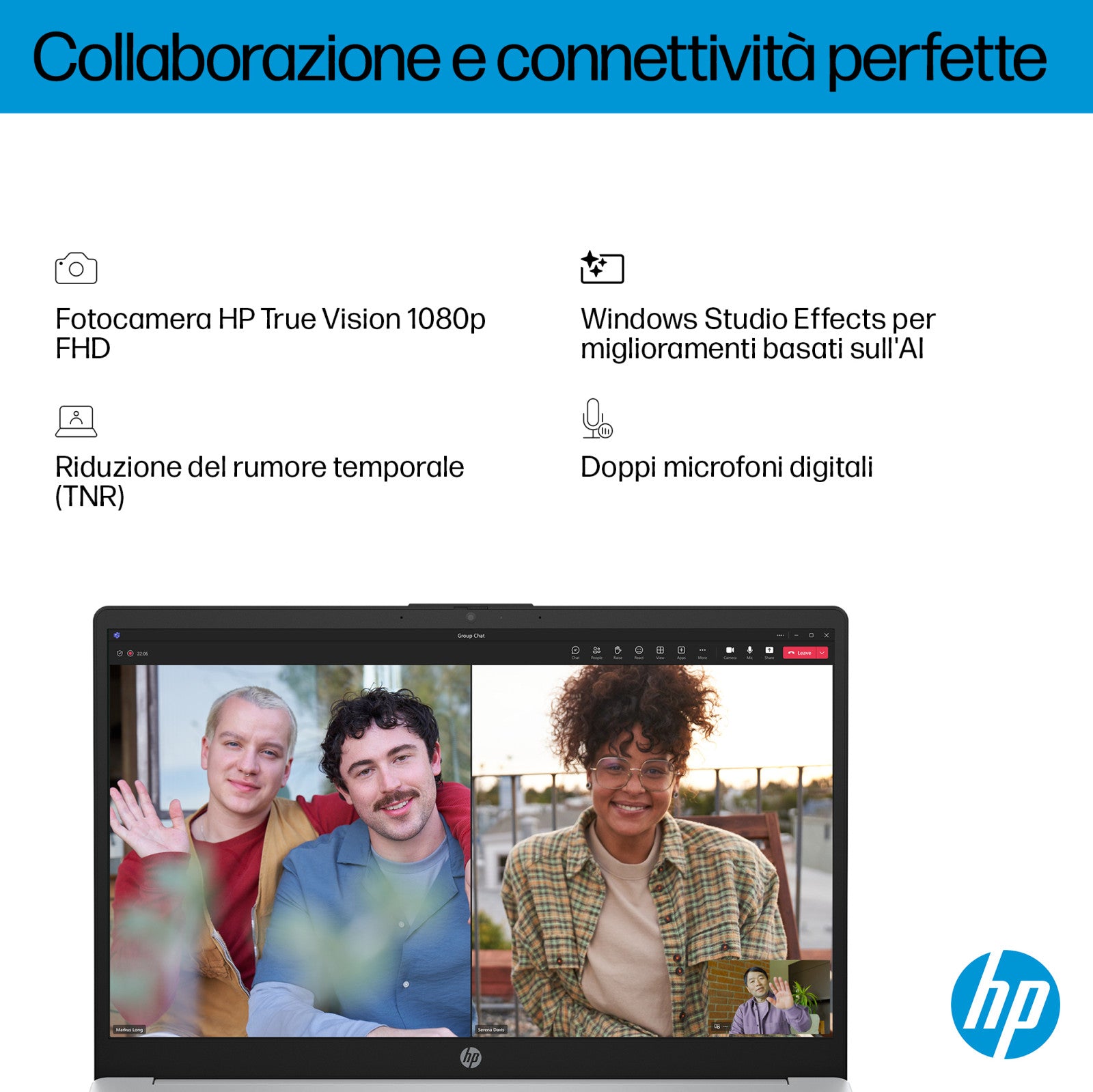 L'HP OmniBook 3 offre una connettività completa, con porte USB Type-C, USB Type-A, HDMI e una porta combinata cuffie/microfono. Il design leggero e portatile ti consente di portare il tuo lavoro ovunque tu vada, senza compromessi sulle prestazioni. La webcam HP True Vision garantisce videochiamate nitide e di alta qualità.