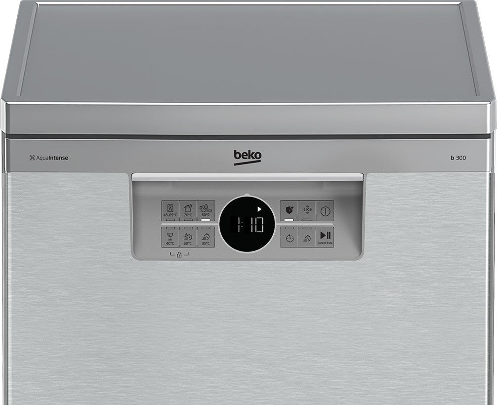 Con un consumo di acqua di soli 8,7 L per ciclo, questa lavastoviglie inox Beko combina efficienza e risparmio. Il display LED e i controlli intuitivi rendono la selezione dei programmi semplice e immediata.