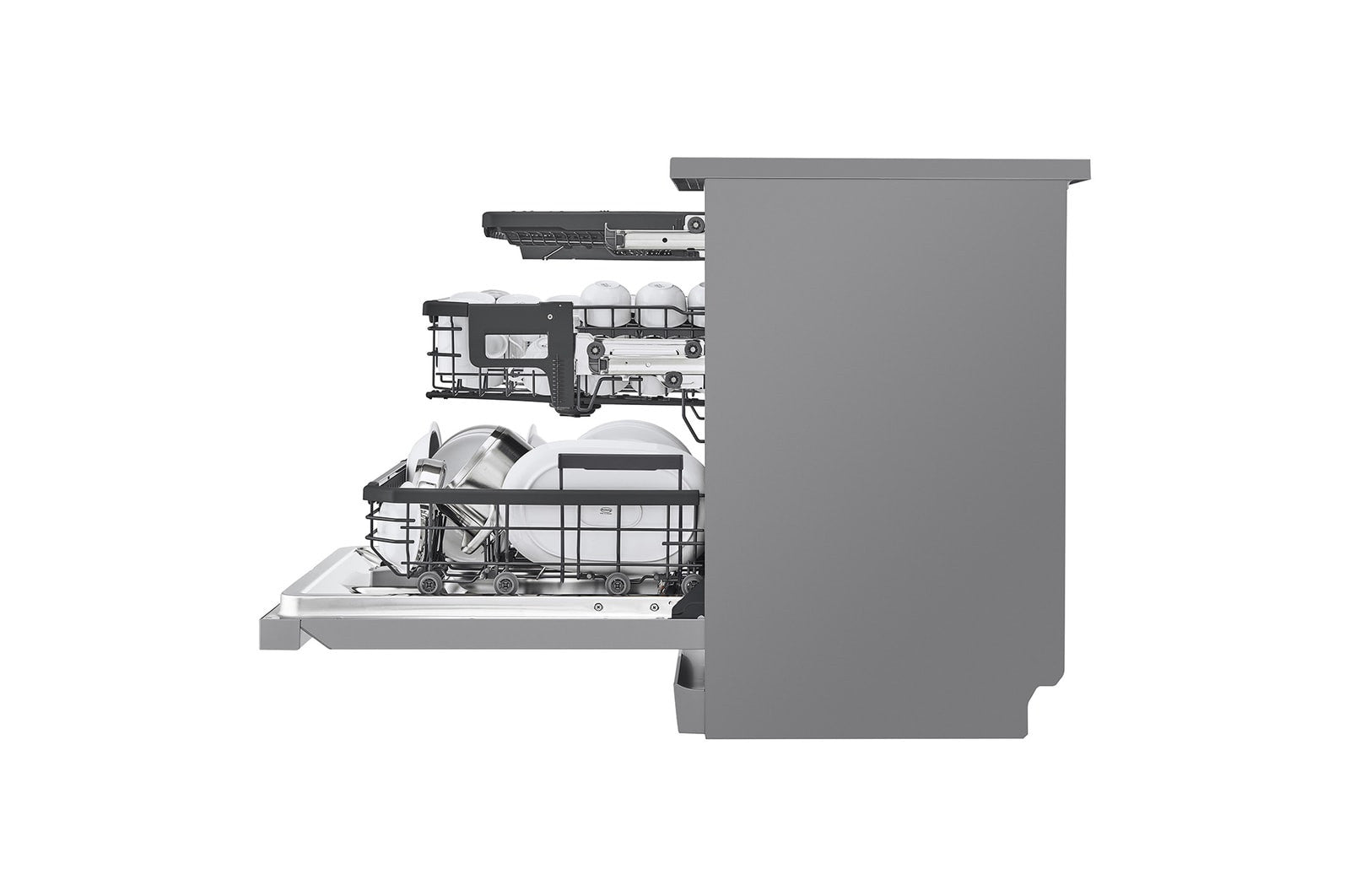 La lavastoviglie LG DF587HVS offre spazio per lavare fino a 14 coperti, ideale per famiglie numerose o per chi ama organizzare cene con amici. La sua flessibilità interna permette di adattare lo spazio alle tue esigenze, lavando facilmente anche pentole e padelle di grandi dimensioni.