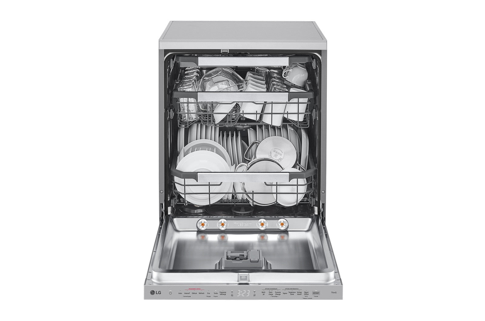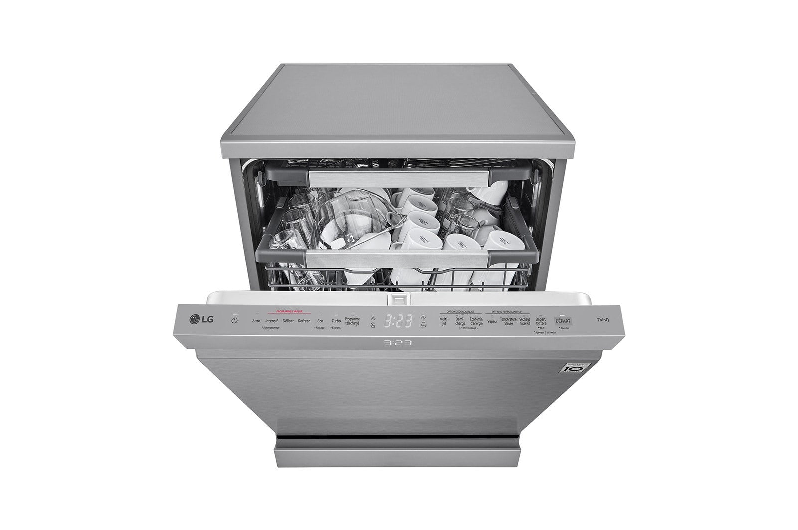 Grazie all'app LG ThinQ, puoi controllare la tua lavastoviglie da remoto, monitorare i consumi e ricevere notifiche sullo stato del ciclo di lavaggio. La tecnologia al servizio della tua comodità.