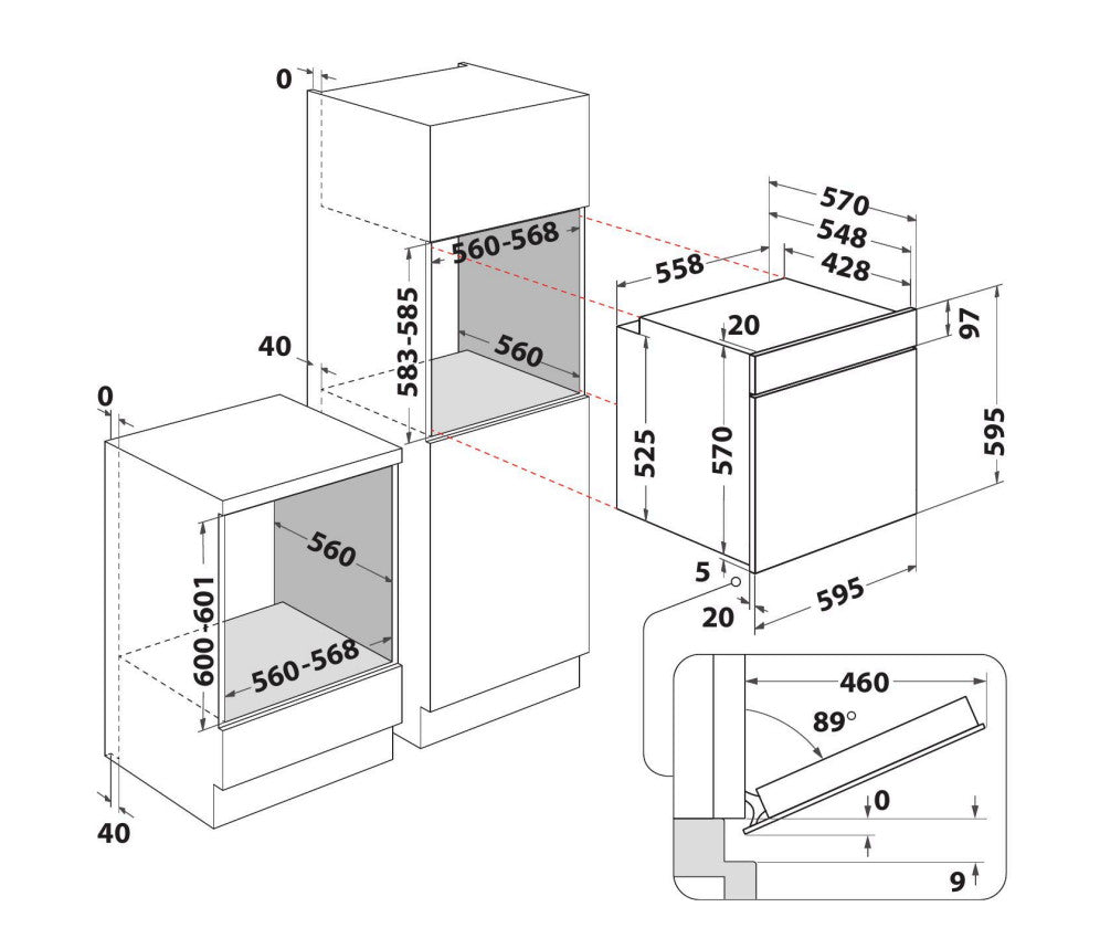 • Larghezza dello scomparto di installazione (min): 56 cm