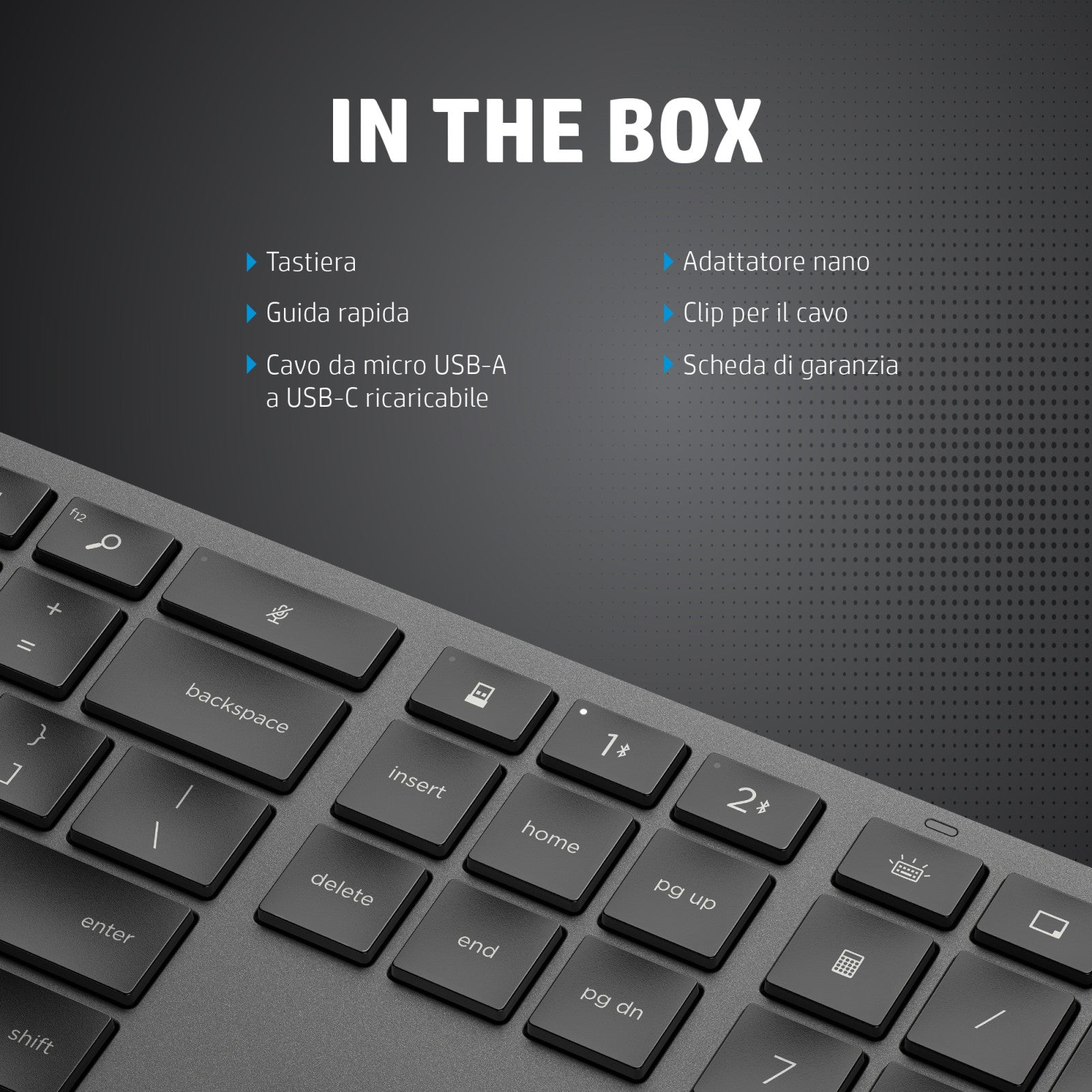 Benvenuti nel mondo dell'eccellenza tecnologica con la tastiera HP Wireless 975, un capolavoro di ingegneria disponibile ora su BestDigit. Questa tastiera retroilluminata rappresenta il perfetto connubio tra funzionalità avanzate e design elegante, ideale per professionisti e appassionati di tecnologia che cercano il massimo delle prestazioni.