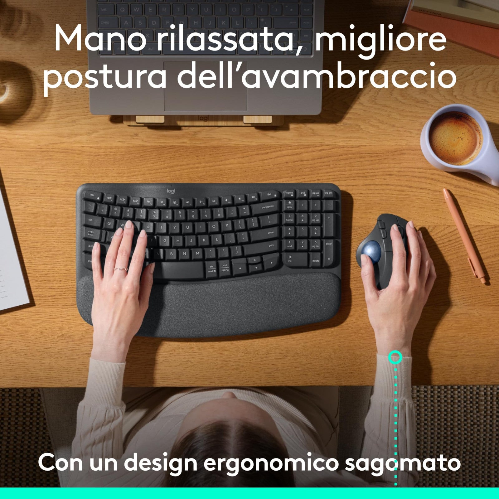 Il design ergonomico del Logitech ERGO M575S è stato studiato per adattarsi perfettamente alla forma della mano, riducendo l'affaticamento durante le lunghe sessioni di lavoro. La sua forma sagomata mantiene l'avambraccio in una posizione naturale, offrendo un comfort senza precedenti.