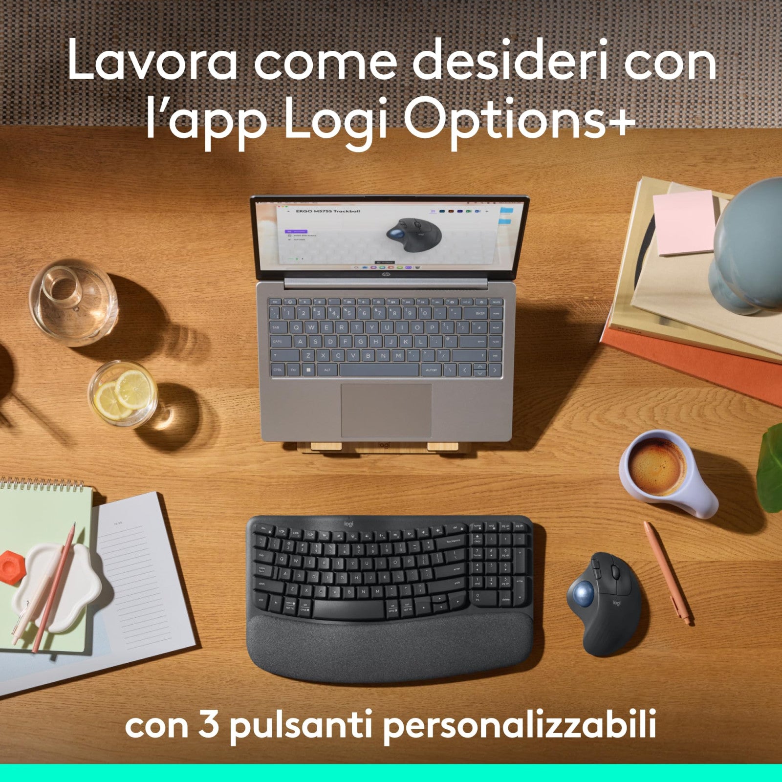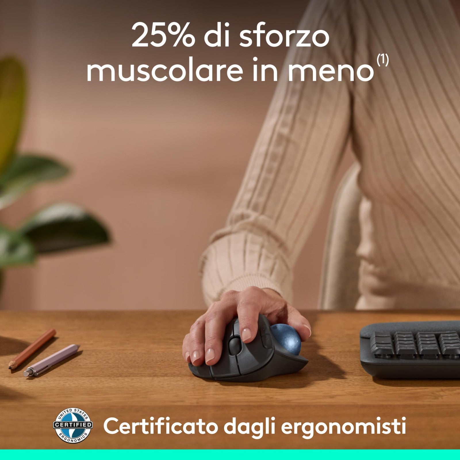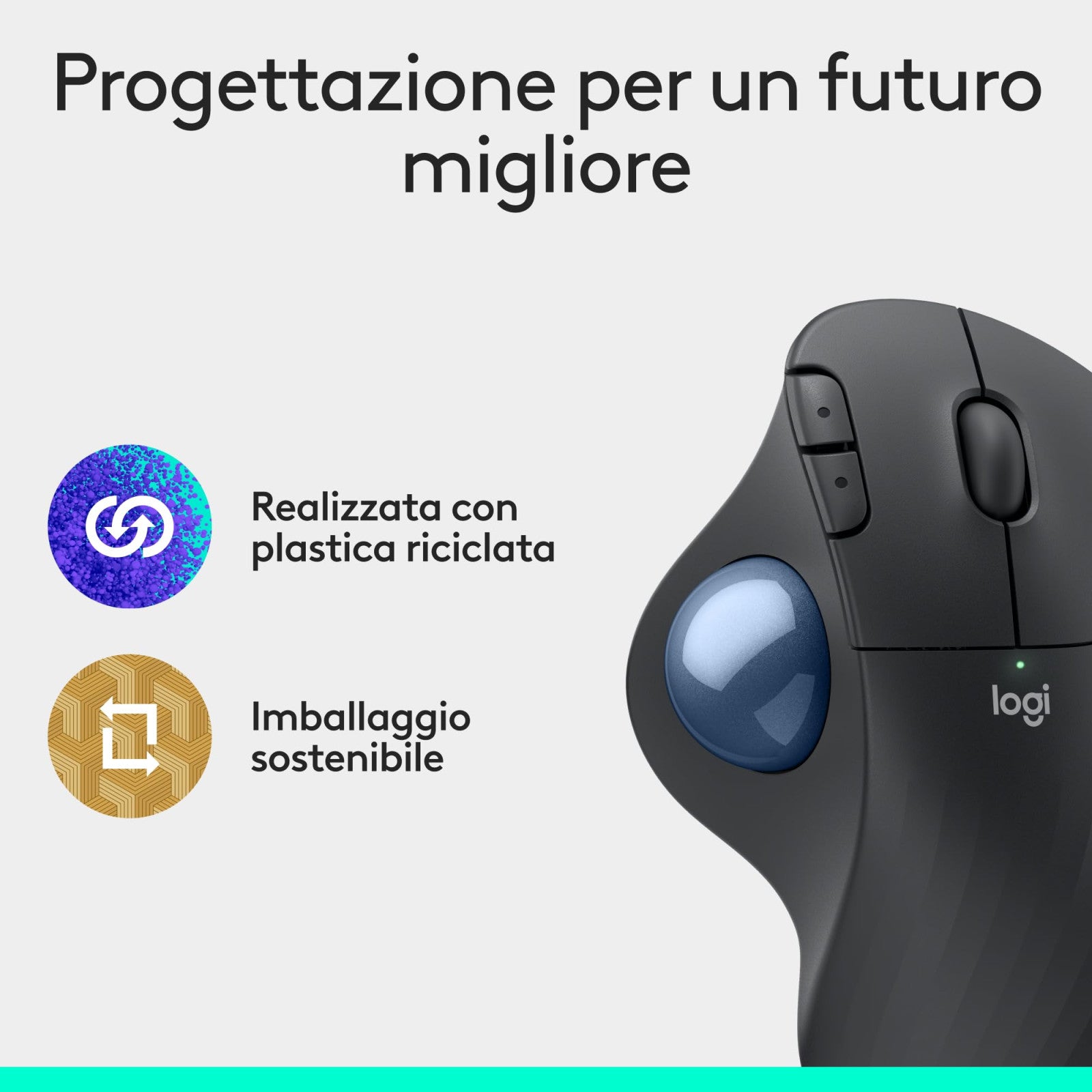 Logitech ERGO M575S Mouse Trackball Wireless Ergonomico Grafite per PC/Mac