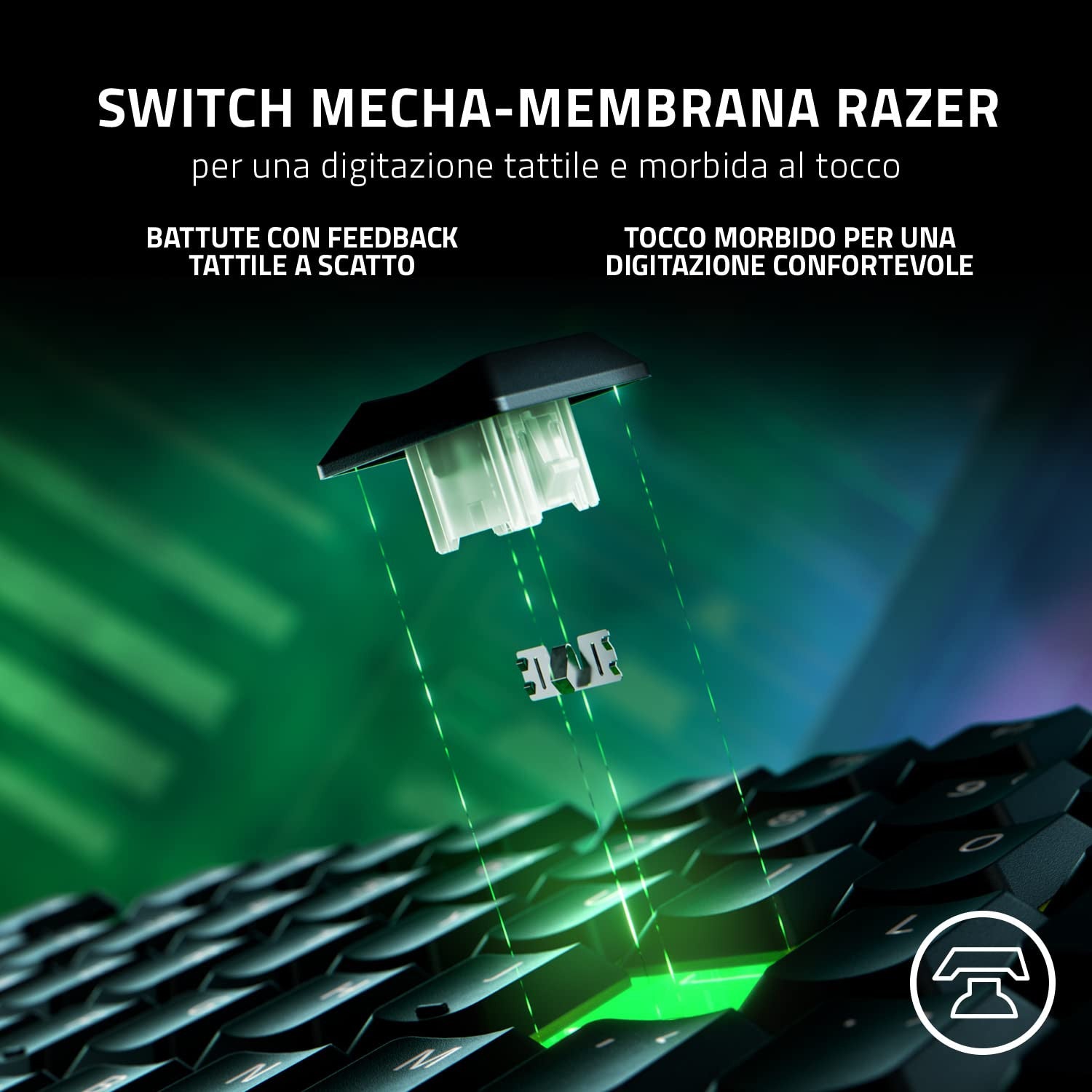 At the heart of the Razer Ornata V3 are the innovative hybrid mecha-membrane switches , which combine mechanical responsiveness with the softness of a membrane. This technology ensures a precise and comfortable typing experience, ideal for long gaming sessions or intensive work. The ultra-thin shape not only enhances the aesthetics of your setup, but also improves ergonomics, reducing fatigue during prolonged use.