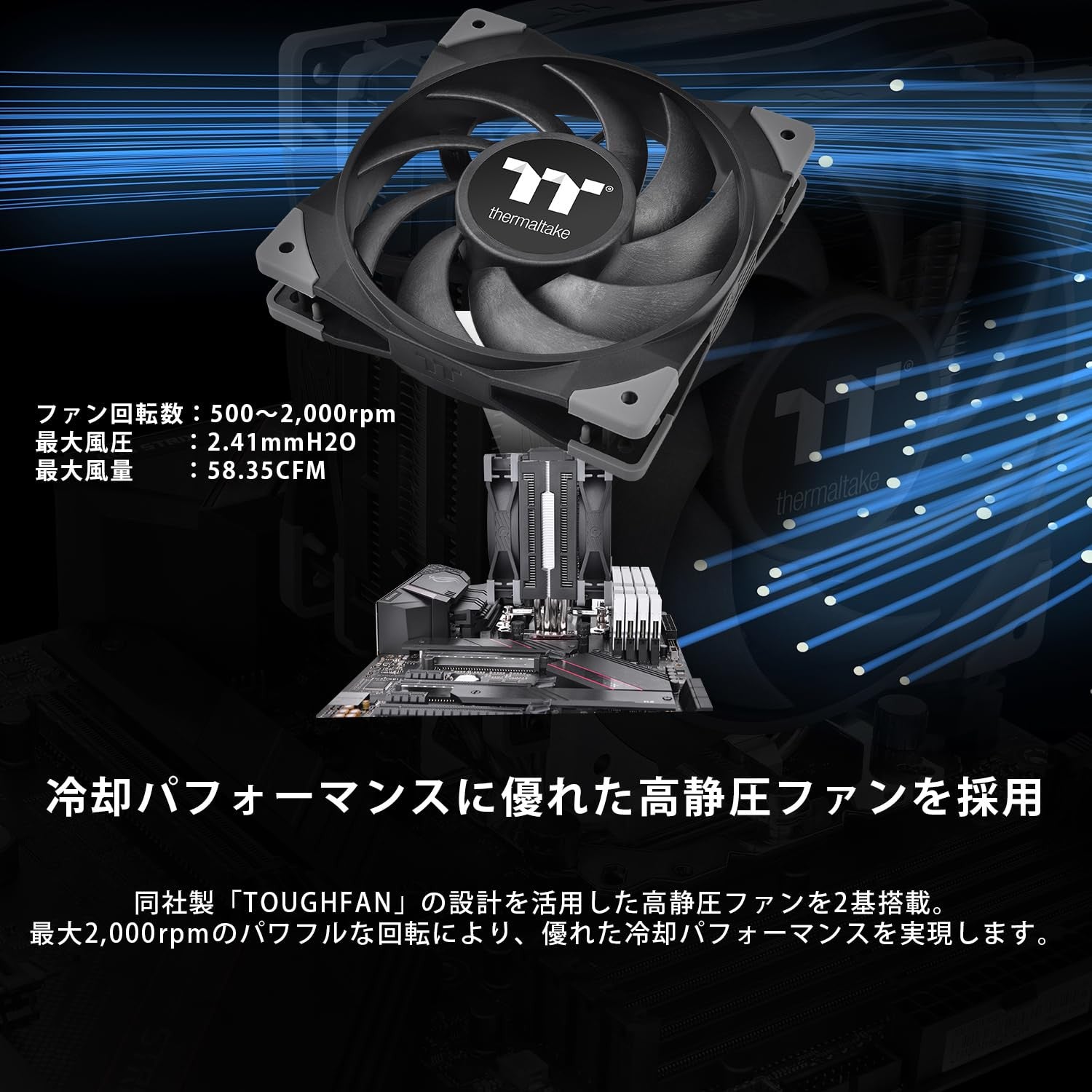 Grazie alla sua altezza di 159,5 mm, questo cooler 160mm offre un'eccellente dissipazione del calore senza compromettere lo spazio all'interno del case. La pressione dell'aria massima di 2,41 mmH2O assicura un flusso d'aria costante e efficace, mantenendo la tua CPU fresca anche sotto carichi di lavoro intensi.