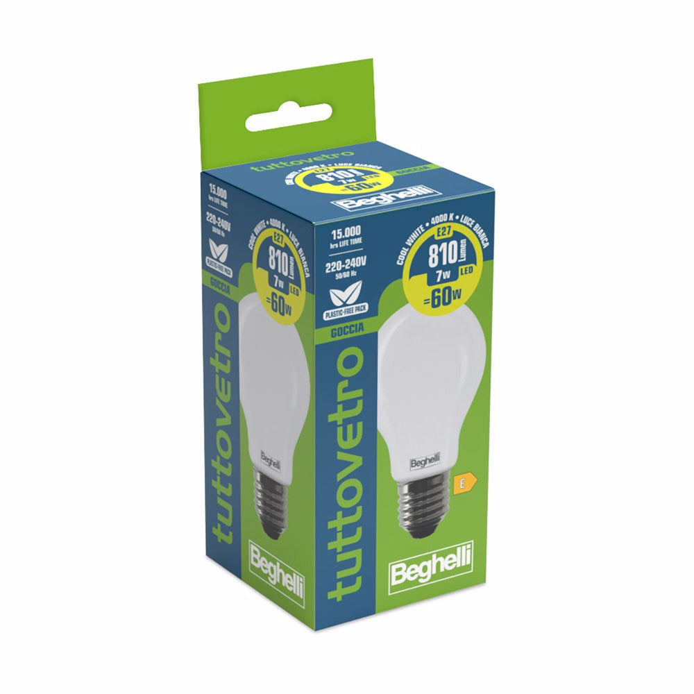 Beghelli Lampadina LED 7W E27 4000K Bianco neutro 810lm Equivalente 60W 15000h