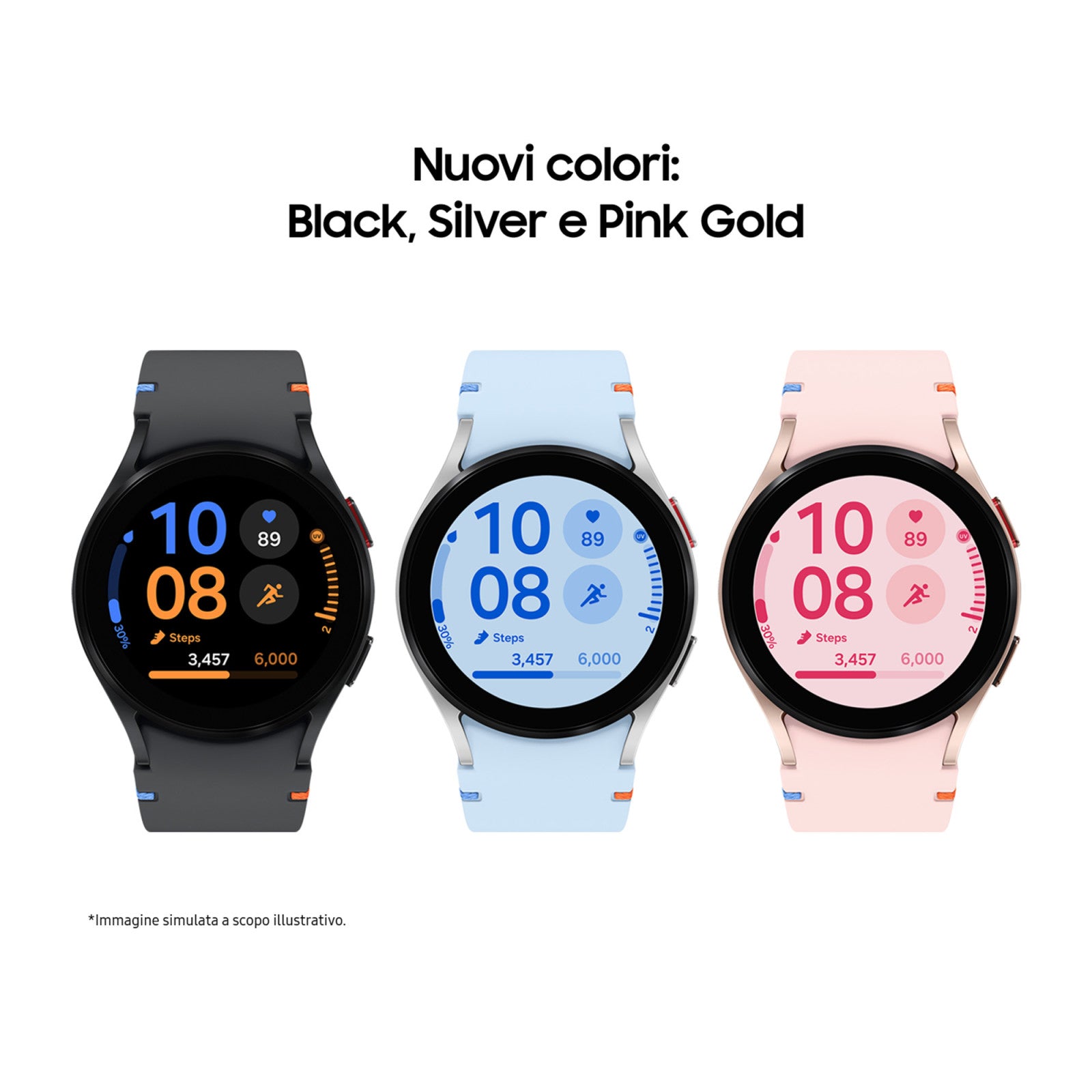 Disponibile in tre colorazioni sofisticate – Black, Oro Rosa e Silver – il Samsung Galaxy Watch FE si adatta perfettamente a ogni stile, dal casual allo sportivo. Grazie ai cinturini intercambiabili, puoi personalizzare il tuo orologio per ogni occasione, esprimendo al meglio la tua individualità.