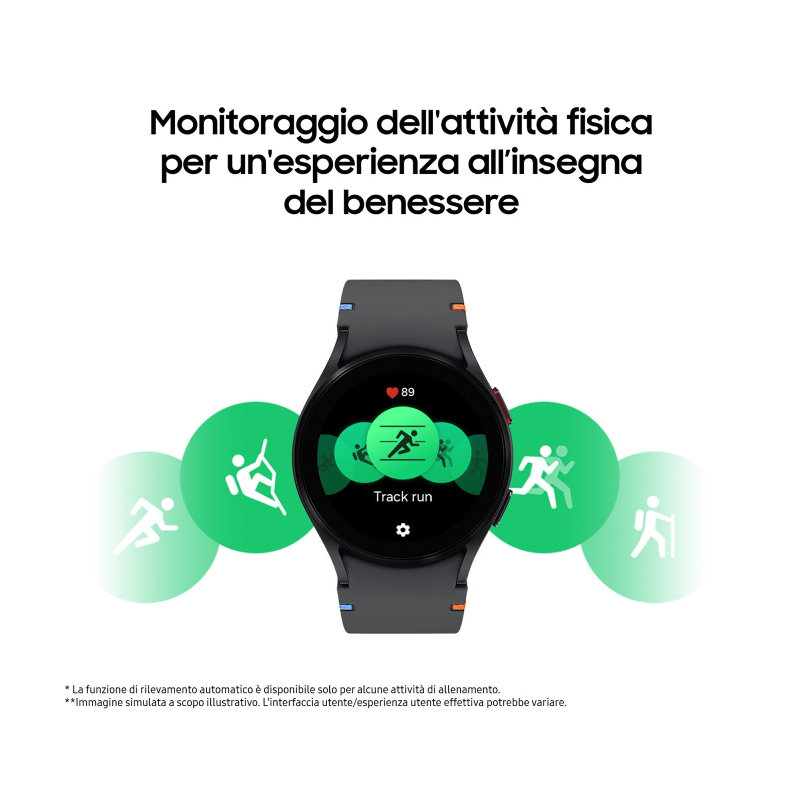 Il Samsung Galaxy Watch FE è molto più di un semplice orologio: è un vero e proprio alleato per il tuo benessere. Misura la tua composizione corporea, definisci obiettivi di fitness e monitora oltre 100 attività di allenamento, dallo yoga al nuoto. E se dimentichi di avviare il timer, non preoccuparti: l'orologio riconoscerà automaticamente l'attività svolta.