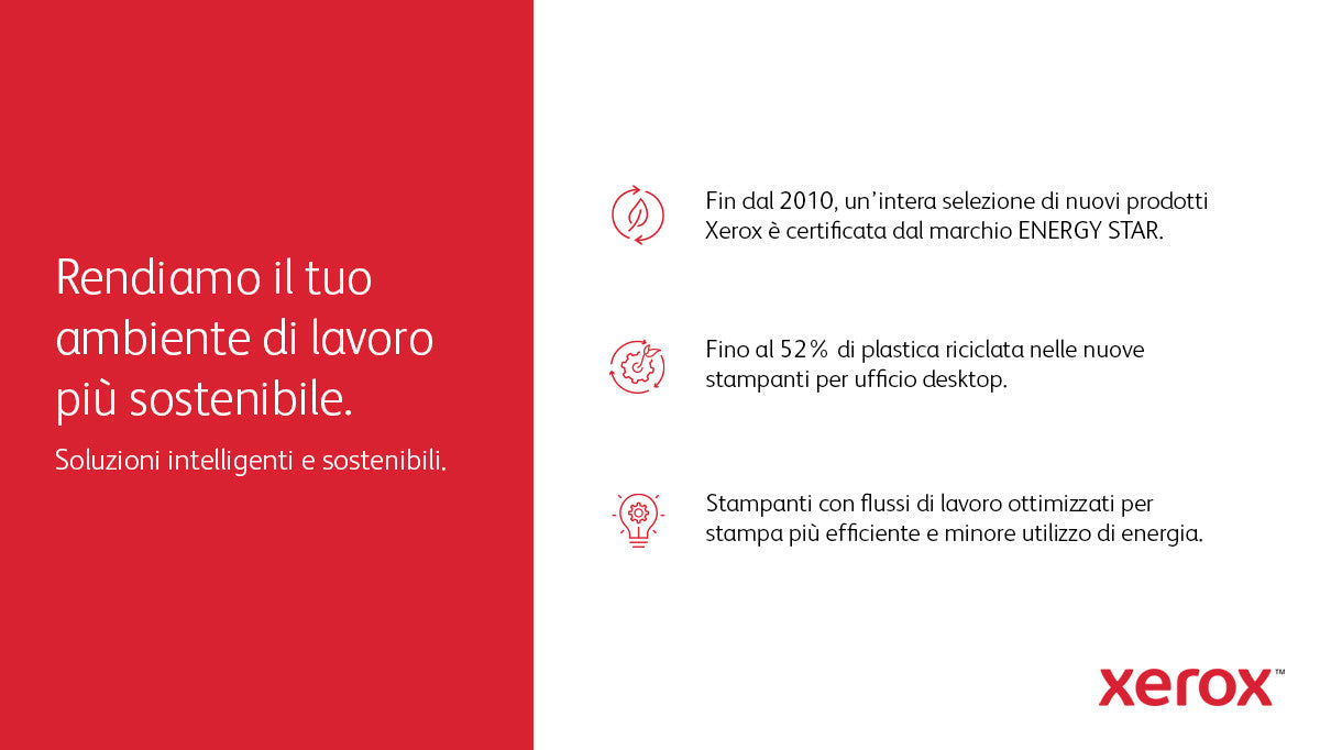Per gli uffici attenti all'ambiente, questa stampante è certificata ENERGY STAR e EPEAT, garantendo consumi energetici ridotti e un impatto ambientale minimo. La sua compattezza la rende adatta a qualsiasi spazio di lavoro, senza compromettere le prestazioni.