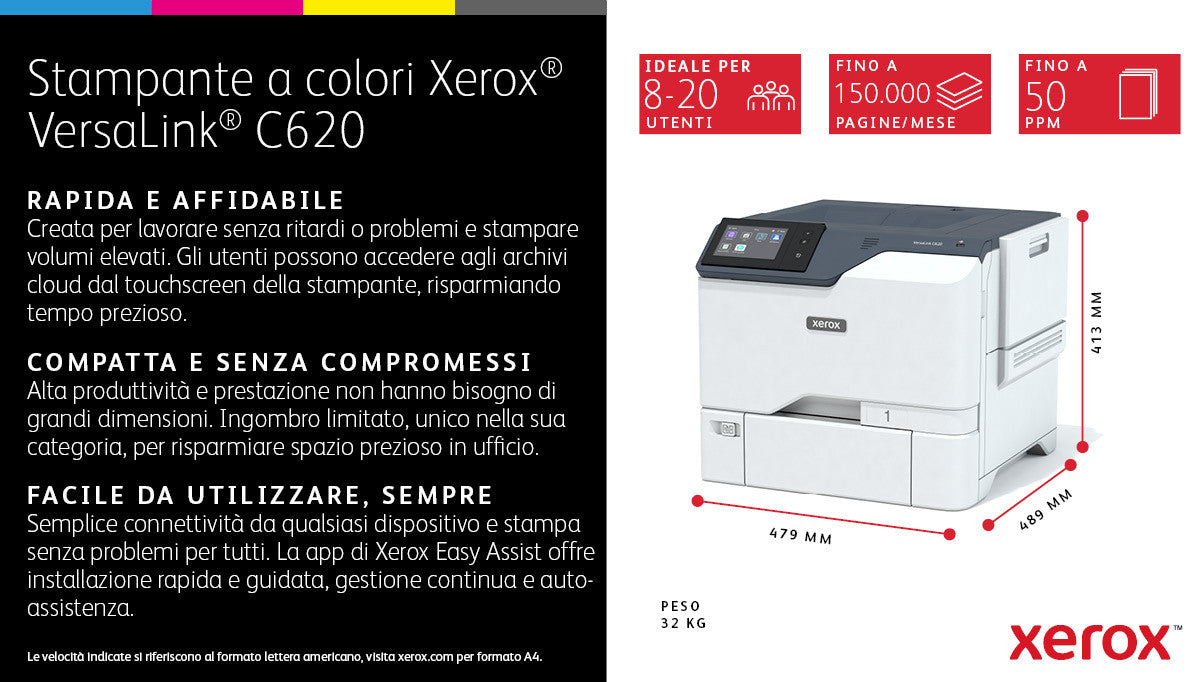 Xerox VersaLink C620 Stampante Laser A4 Colori 52ppm Fronte/Retro Automatico