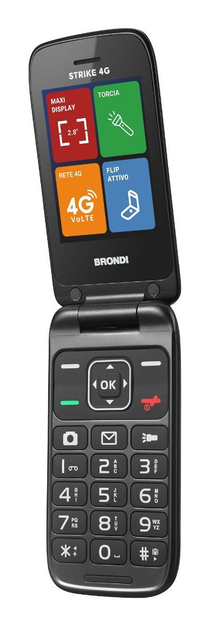 Il Brondi Strike vanta una connessione 4G per chiamate cristalline e navigazione veloce. Con il suo design a conchiglia, offre una protezione naturale per lo schermo da 2.8 pollici, ideale per una visualizzazione chiara di messaggi e contatti.