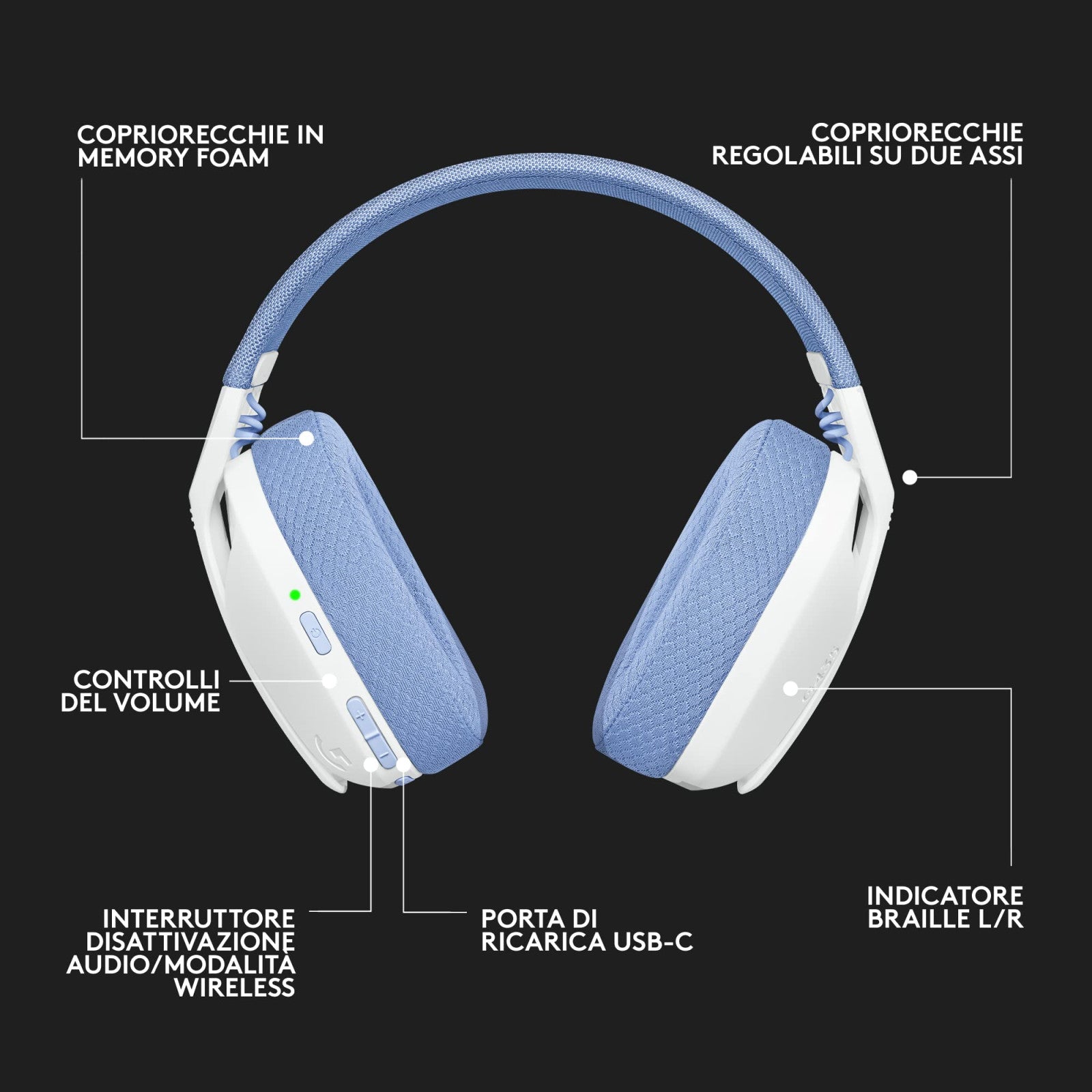 Logitech G435 Cuffie Gaming Wireless LIGHTSPEED e Bluetooth Over Ear Bianco