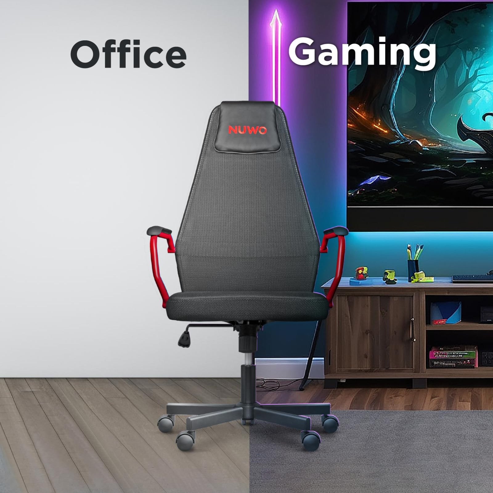 NUWO Grid Sedia Gaming Ergonomica Girevole Regolabile Rete Traspirante Rosso e Nero