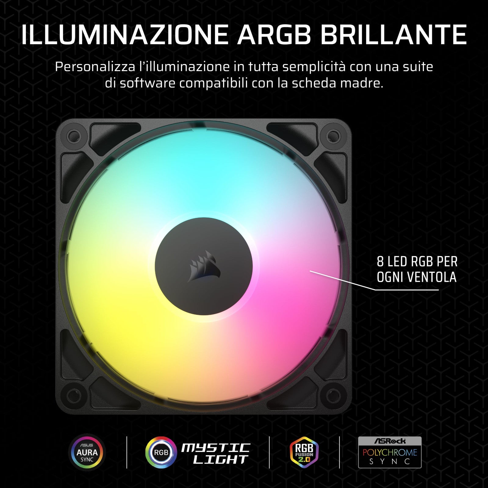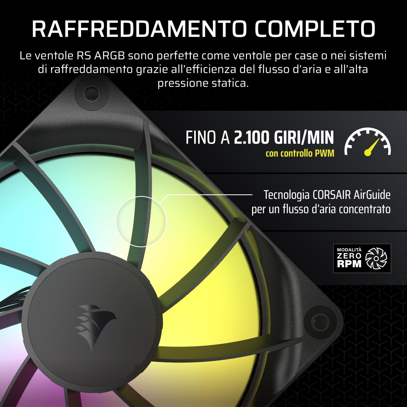 Ventilateur PC Corsair RS120 120 mm ARGB PWM à faible bruit, roulement à dôme magnétique