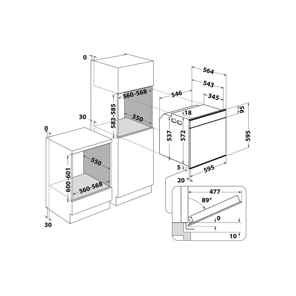 Whirlpool W7 OM5 4 H Forno da Incasso Elettrico 73L Multifunzione Inox e Nero A+