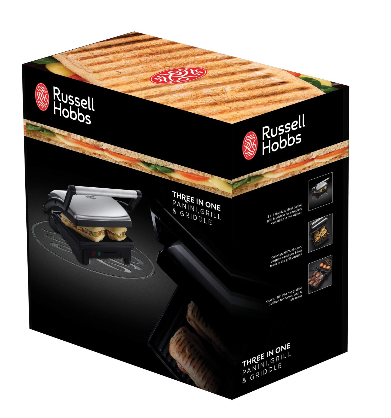 Russell Hobbs Plaque de cuisson électrique 3 en 1 pour paninis, barbecue, antiadhésif, en acier inoxydable