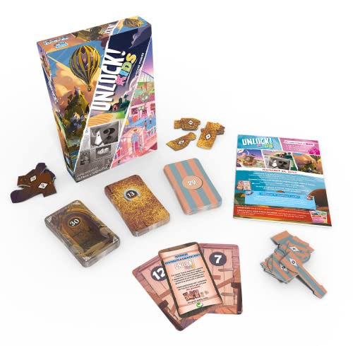 Unlock! Kids porta le escape room a casa tua. Questo gioco da tavolo per bambini dai 6 anni offre 3 avventure emozionanti, stimolando logica e creatività. Con 150 carte e componenti speciali, è l'ideale per divertirsi in famiglia sviluppando abilità cognitive.