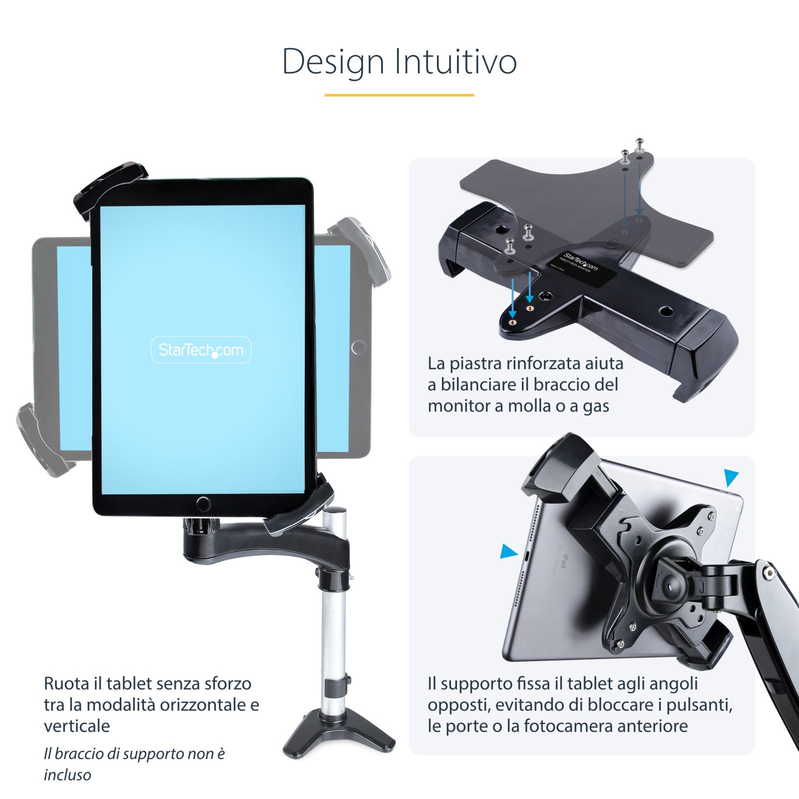 Con il supporto tablet VESA StarTech.com, potrai godere di una maggiore ergonomia e di un'organizzazione ottimale del tuo spazio, migliorando significativamente la tua esperienza d'uso del tablet in ambito professionale e creativo.