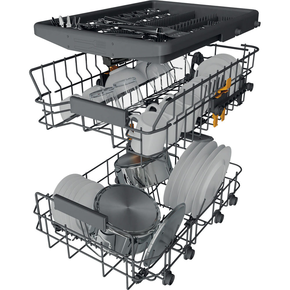 La Whirlpool WH6IC11BS7LSA0 è dotata di numerose funzionalità che la rendono estremamente versatile e facile da usare. Il terzo cesto fisso offre spazio aggiuntivo per posate e utensili, mentre i cestelli regolabili permettono di adattare l'interno della lavastoviglie alle tue esigenze.
