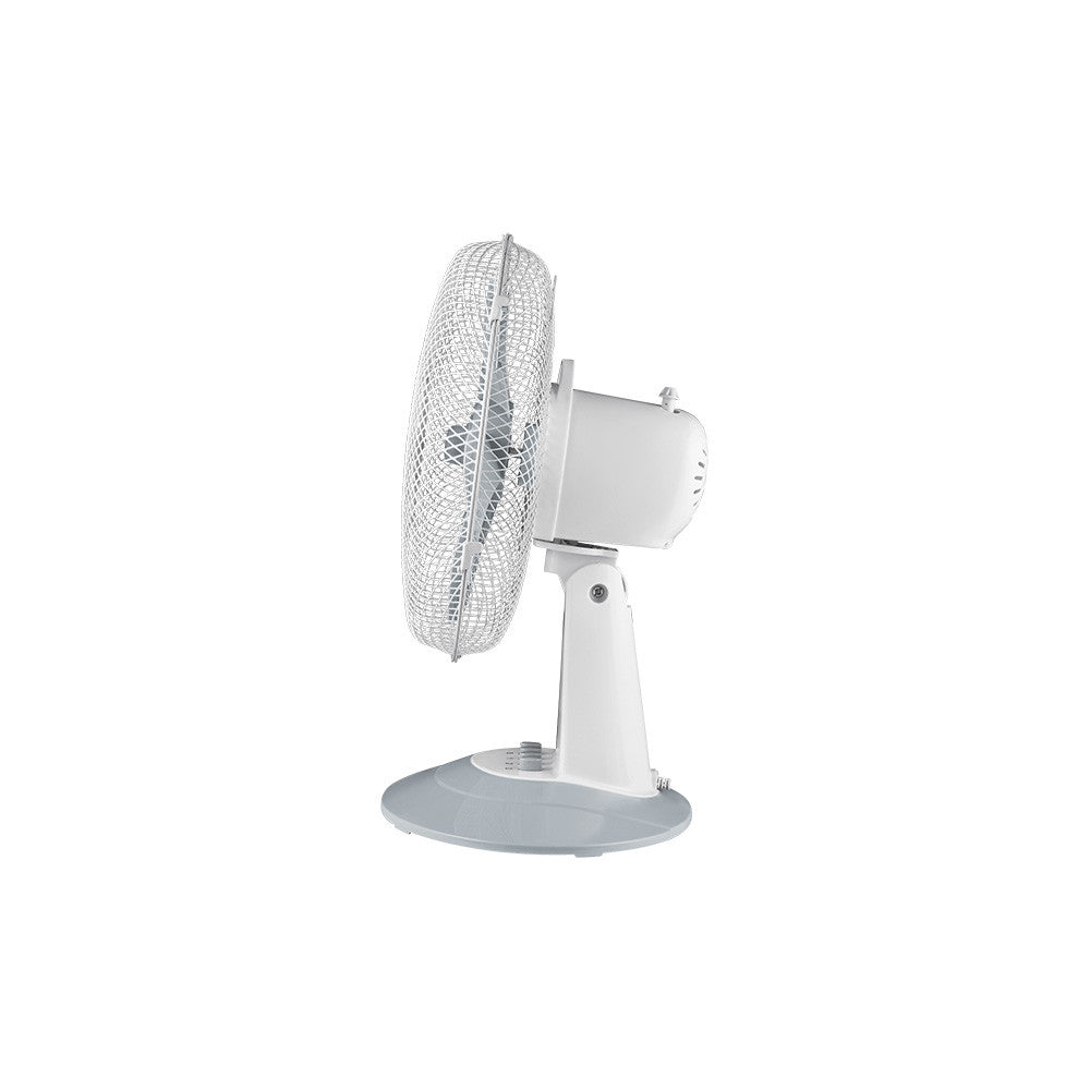 Realizzato con materiali di alta qualità, questo ventilatore da scrivania combina durabilità e prestazioni. Il suo design bianco con dettagli grigi si integra perfettamente in ogni ambiente, dalla camera da letto all'ufficio.
