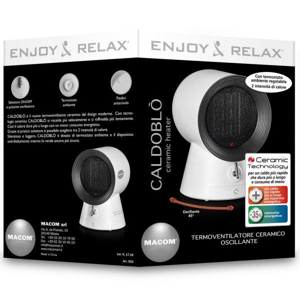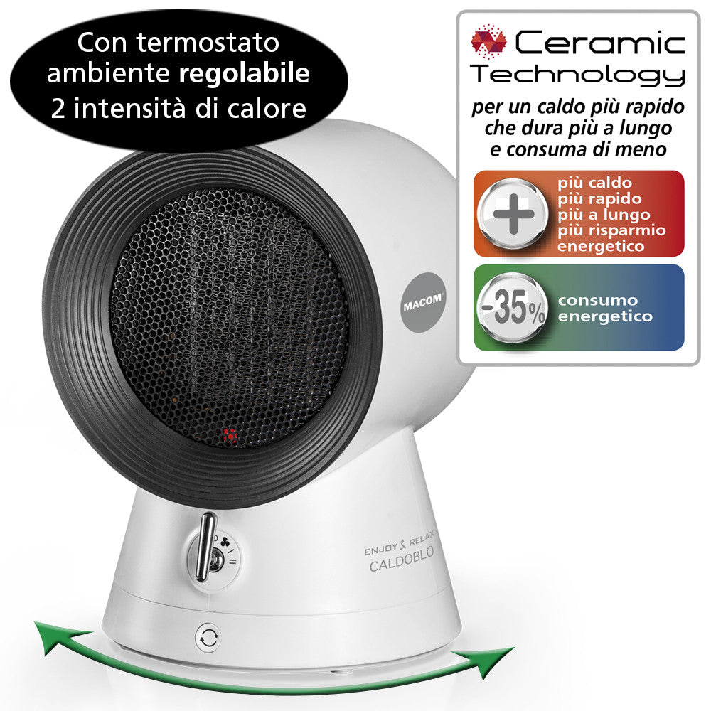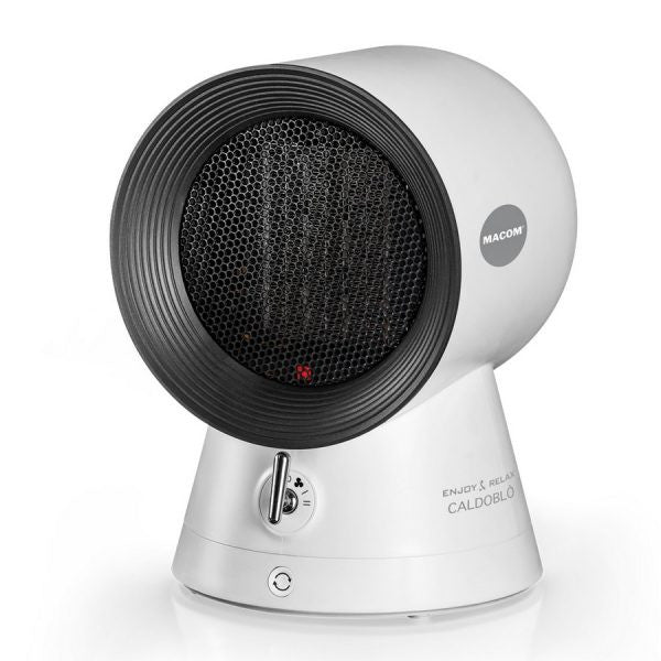 Macom caldoblò: termoventilatore ceramico oscillante con 2 livelli di potenza, termostato e sistema antiribaltamento. Ideale per riscaldare gli interni in sicurezza con un design moderno.
