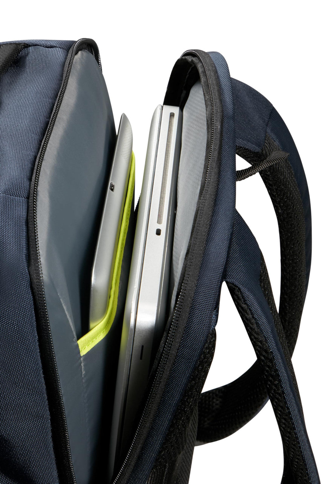 La Samsonite Guardit 3.0 offre un'organizzazione interna superiore, con tasche dedicate per ogni esigenza. La tasca frontale con cerniera permette un accesso rapido agli oggetti essenziali, mentre lo scomparto principale offre ampio spazio per documenti e cavi.