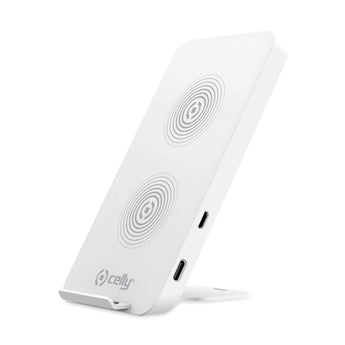 Celly Caricatore Wireless Veloce 10W con Supporto Bianco per Apple Samsung Huawei