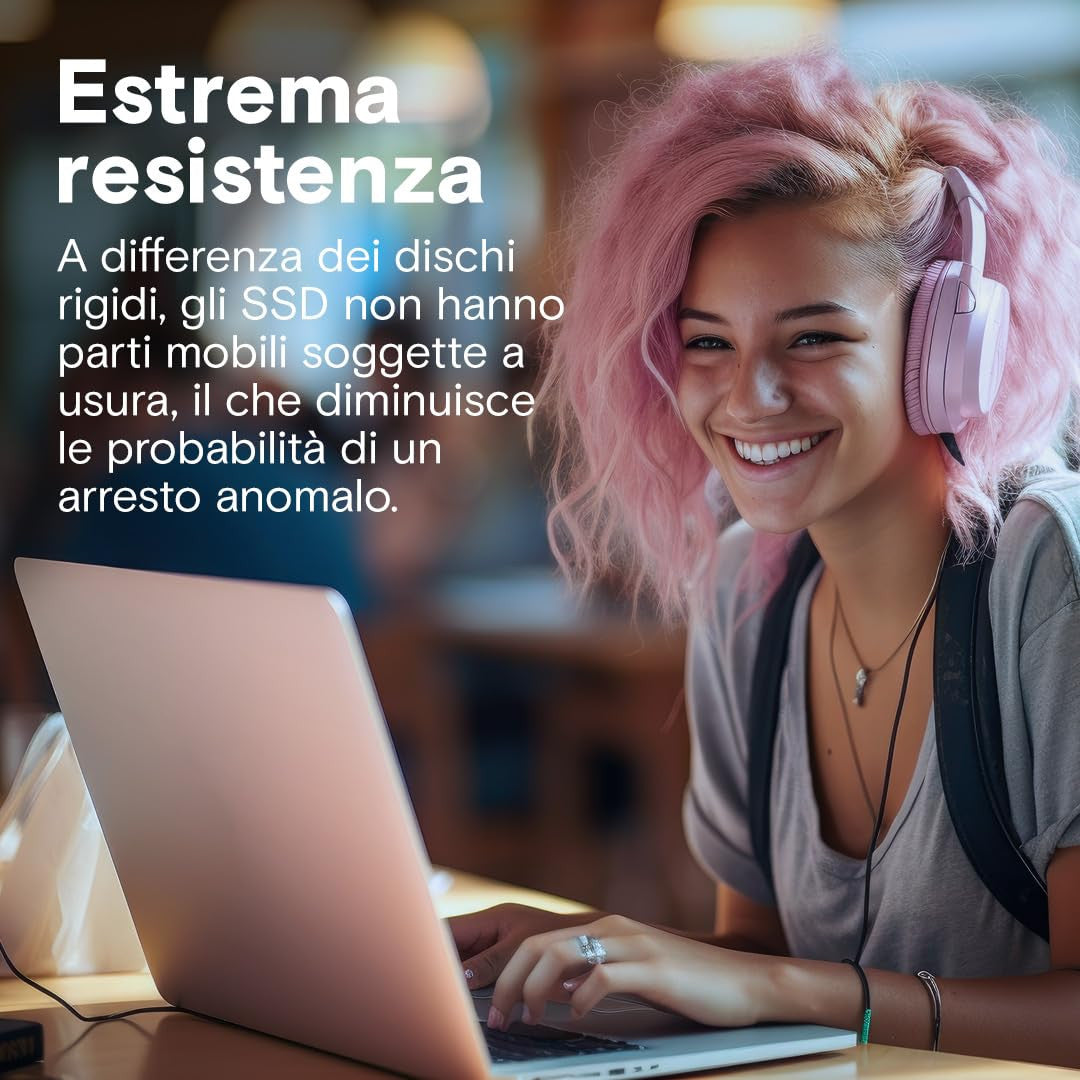 La tecnologia 3D NAND non solo offre prestazioni superiori, ma garantisce anche una maggiore durata nel tempo rispetto ai tradizionali hard disk. Potrete archiviare e accedere ai vostri dati con la tranquillità di sapere che sono al sicuro su un supporto affidabile e resistente.