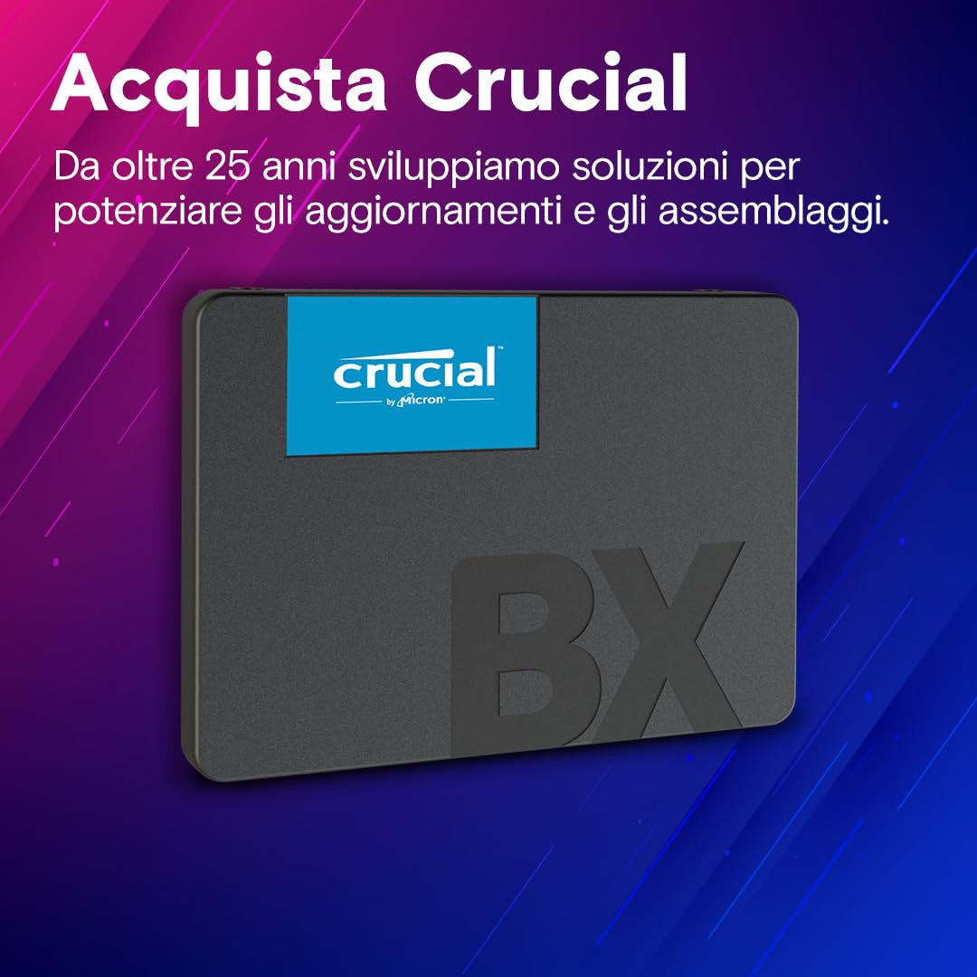 L'installazione del Crucial BX500 è un gioco da ragazzi, permettendovi di trasformare rapidamente le prestazioni del vostro computer. Che siate professionisti in cerca di efficienza o appassionati di gaming alla ricerca di tempi di caricamento ridotti, questo SSD soddisferà ogni vostra esigenza.