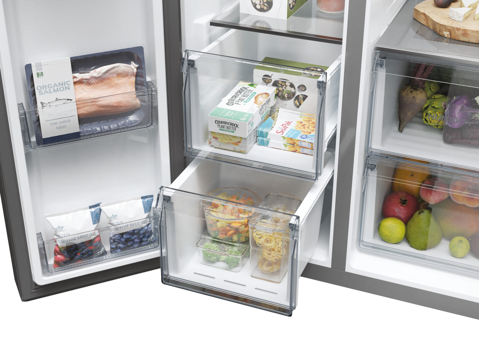 Grazie alla sua generosa capacità, il Frigorifero Side by Side Haier HSW79F18ANMM ti permette di conservare una grande quantità di alimenti, mantenendoli sempre freschi e ben organizzati. Perfetto per famiglie numerose o per chi ama avere sempre a disposizione una vasta scelta di prodotti.