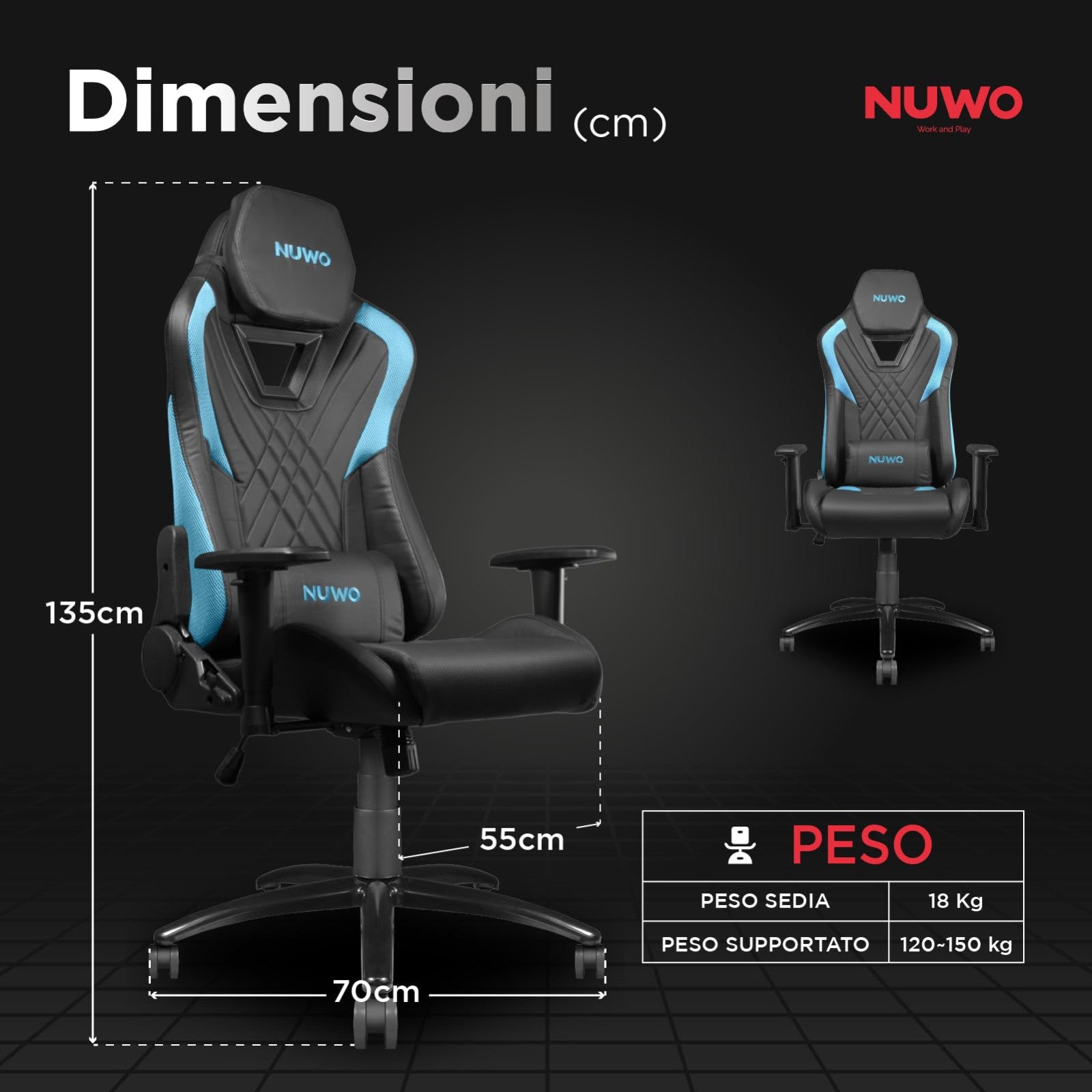 Nuwo DoXx Sedia Gaming Ergonomica Blu con Supporto Lombare e Braccioli 2D