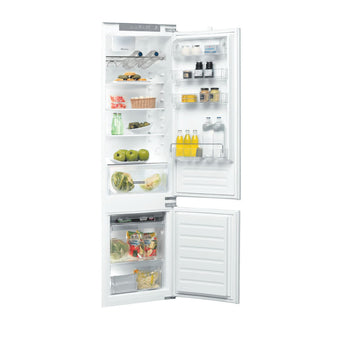 Questo frigorifero combinato Whirlpool è progettato per integrarsi perfettamente nella vostra cucina, con porte reversibili e maniglie da incasso. Il controllo elettronico garantisce una gestione precisa delle funzioni, mentre il display intuitivo vi permette di monitorare e regolare facilmente le impostazioni.